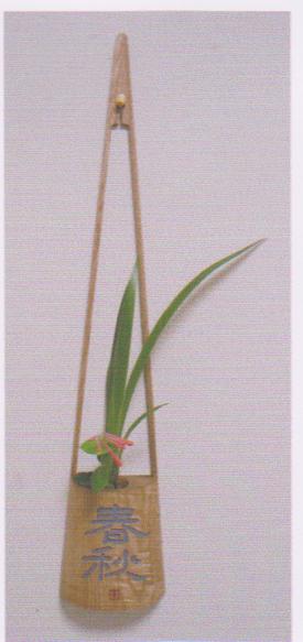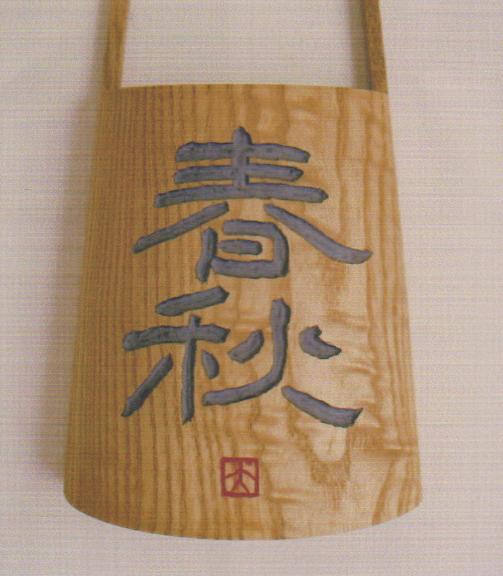 ❶隷書 ❷書刻 一輪挿 ❸タモ板 ❹彫込 平彫 文字灰色 ❺ 90×12cm ❻制作 2002 ❼番号:大224 ❽個人蔵