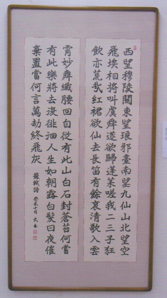 ❶ standard script ❷ frame ❸ sumi-ink on paper ❹ Su-shi ❺ seal put on the top : study standard script over the life