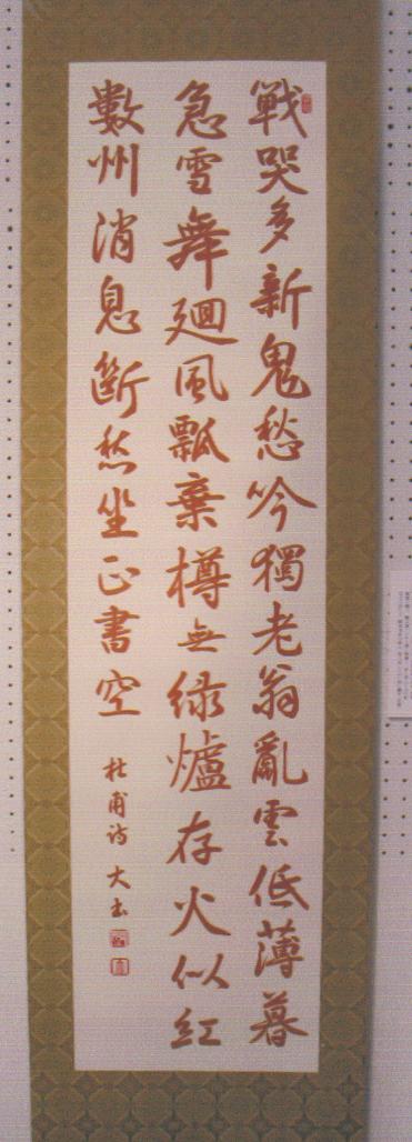 ❶ transferable script ❷ hanging scroll ❸ brown-ink on paper ❹ Du-fu ❺ seal put on the top : lament for Iraq War