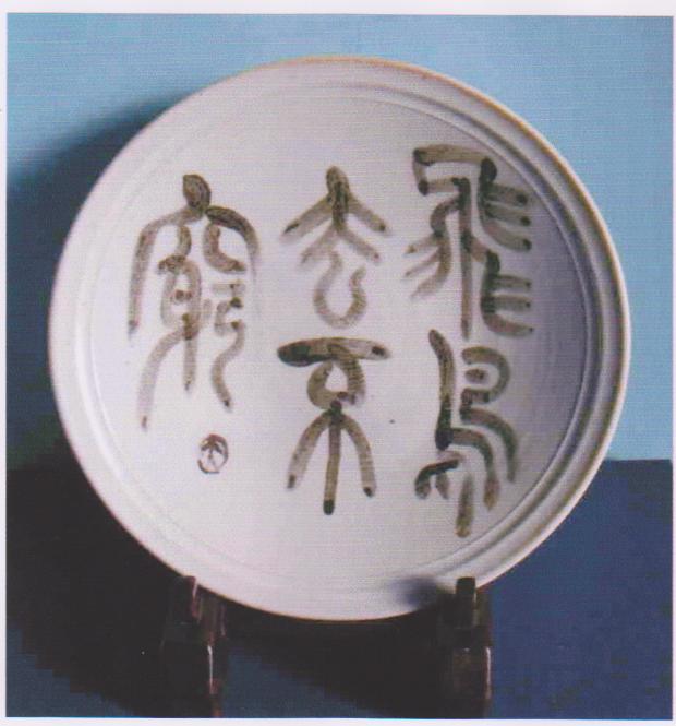 ❶ oldest script ❷ ceramic plate ❸ bengala(Dutch), red iron oxide(Eng) ❹ firing: Kudo Kosei (potter) ❺ Wang-wei